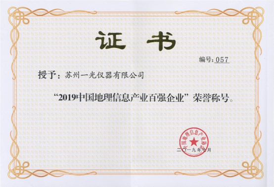 本屆(2019)中國地理信息產業大會以“促進高質量發展,譜寫產業新篇章”為主題,于7月25-26日在廣東省珠海市召開。在會議上公布了《2019中國地理信息產業百強企業》名單,公司控股子公司蘇州一光儀器有限公司再次榮登“中國地理信息產業百強企業”榜單。